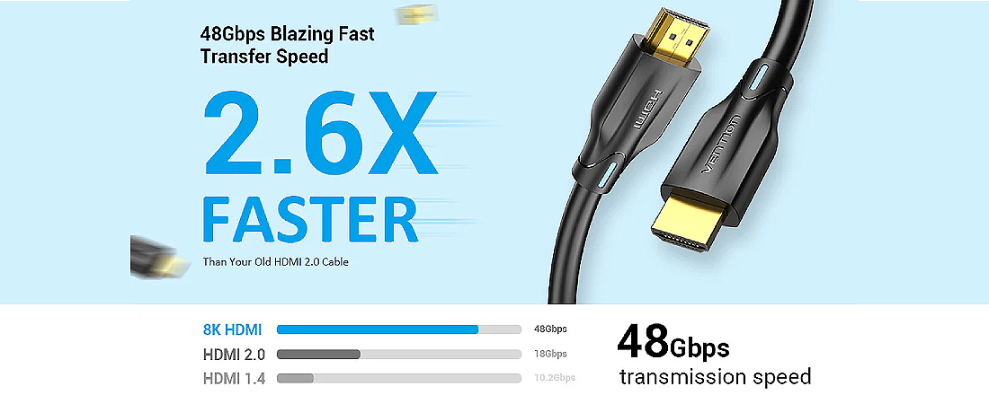 | סקירה | כבל HDMI 8K של Ventionהכירו את כבל ה-HDMI 2.1 Ultra High Speed 8K, הפתרון המושלם לשדרוג מערכת הבידור הביתית שלכם. כבל HDMI מהשורה הראשונה, שנועד לספק איכות תמונה וסאונד יוצאת דופן, מבטיח שתפיקו את המיטב מהמכשירים שלכם. בין אם אתם צופים בסרט, מזרים תוכן, או משחקים במשחקים אינטנסיביים, כבל זה נבנה כדי להעניק חוויה חלקה עם ביצועים גבוהים.