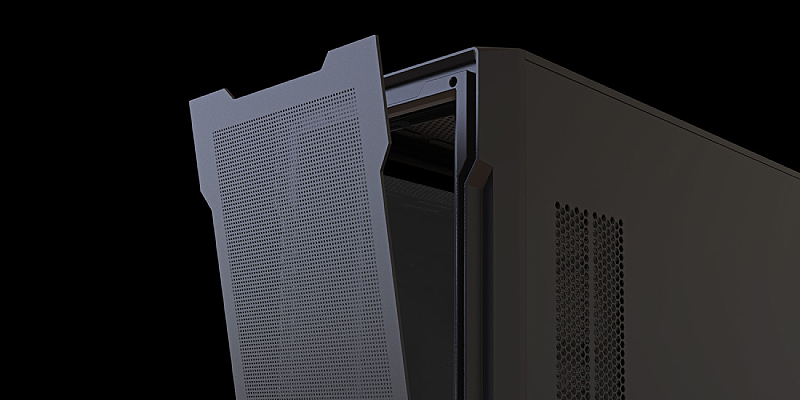 הפאנל הקדמי מעוגן באמצעות מנגנון מגנטי ומאפשר פירוק מהיר לצורך ניקוי מסננים, שדרוג רכיבים או שיפור זרימת האוויר.