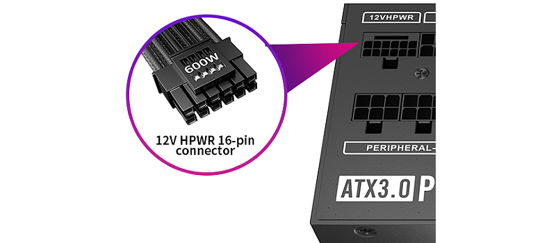 תואם לסטנדרט ATX 3.0 ו-PCIe 5.0ספק הכוח כולל מחבר 16 פינים 12VHPWR, המספק עד 600W עבור כרטיס הגרפי שלך. הספק יכול לתמוך בצריכת חשמל כוללת של עד פי 2, ובצריכת חשמל של GPU עד פי 3, מה שמכין אותו לרכיבים עתידיים בעלי ביצועים גבוהים.