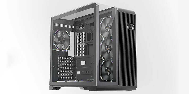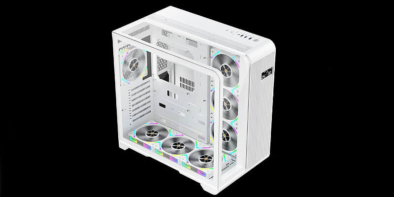 Revew | 1StPlayer RT7The 1StPlayer RT7 computer case is designed to offer both style and impressive performance, providing support for seven fans, accommodating a graphics card up to 400 mm in length, and a CPU cooling system up to 157 mm in height, including the option to add a 360 mm liquid cooling radiator on the right side for optimal cooling. The modern design includes three tempered glass transparent sides, offering a stunning view of the internal components, with the front and top designed in a U-shaped tempered glass to highlight the elegant appearance. The LED display provides real-time information about the CPU status, memory usage, temperatures, and operating frequencies. Includes a removable dust filter from the bottom that allows for easy cleaning and convenient maintenance, ensuring your system remains in optimal condition. Panoramic View: Tempered Glass on Three SidesThe RT7 is equipped with three transparent tempered glass panels, providing a panoramic view of the hardware. Highlight your hardware and stunning RGB lighting from every angle, ideal for gaming enthusiasts and aesthetics lovers who appreciate color and style. Unique Design, Excellent MaterialsU-shaped tempered glass design on the front and top, emphasizing the sleek aesthetics of the structure. The refined exterior, along with hardware and ARGB lighting, provides an impressive visual impact! Unleash Your Gaming Potential with the Innovative Computer Case!With a multi-purpose elegant and futuristic display on the front metal panel, you will have real-time access to your system's vital data. Keep track of CPU usage, memory usage, temperature, and frequency at a glance. Stay in control, even in the heat of battle! Our innovative design keeps you updated without breaking the style. Cooling CompatibilityMultiple options: Install up to 7 fans for unmatched cooling power Strategic airflow: Optimal placement options from the front, back, and bottom Ready for liquid cooling: Can accommodate a massive 360 mm radiator at the front Intuitive Top I/O Panel |