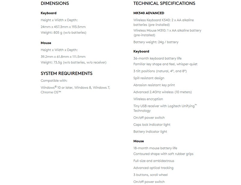 Product Link | Wireless Keyboard and Mouse Set Logitech MK540 Advanced 920-008689 Color:black | ||||||||||||