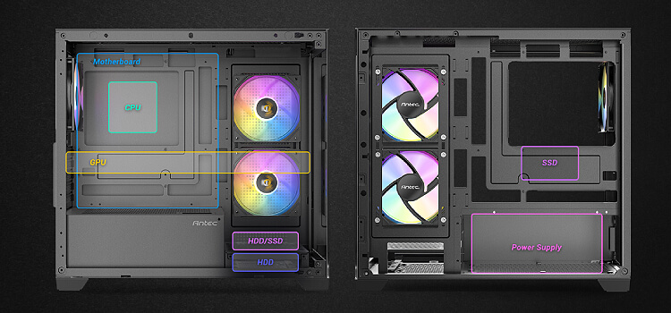 תצוגה פנורמית של 270 מעלותמתאפיין בעיצוב עם זכוכית מחוסמת המאפשרת תצוגה מלאה, הפאנל השמאלי והקדמי של ה-CX300M RGB מספקים מבט בלתי מופרע על המערכת שלך, יוצרים חלון ראווה מרהיב עבור הרכיבים הפנימיים.