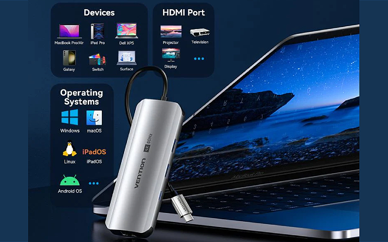Обзор | Vention TQMHBДок-станция USB-C на HDMI/USB-C Gen 1/USB 3.0 x 2/RJ45/SD/TF/TRRS 3.5 мм/PD длиной 0,15 м из серого алюминиевого сплава Универсальная совместимость |