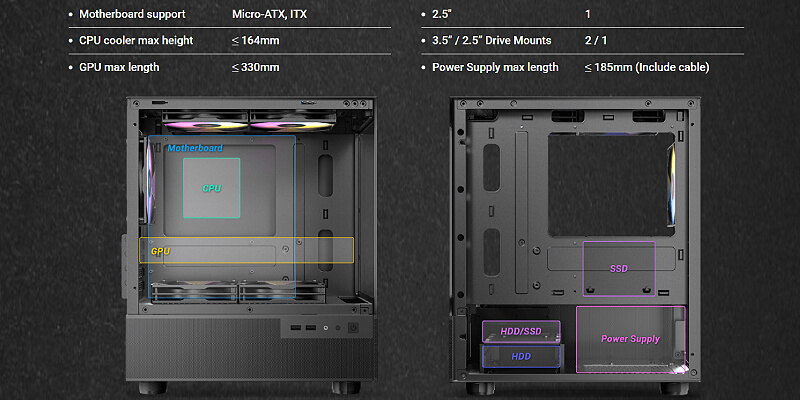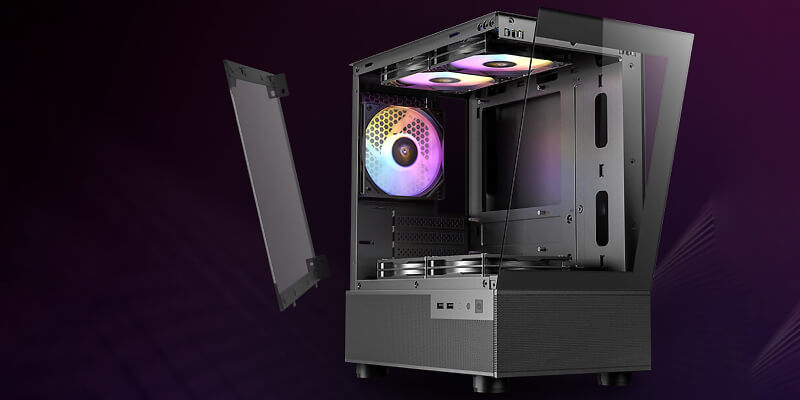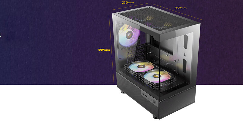 Панорамный обзор на 270 градусовБлагодаря стеклянным панелям спереди и сбоку, CX200M RGB ELITE является идеальным корпусом для вашей сборки M-ATX. Закаленное стекло обеспечивает чистый вид на компоненты, создавая впечатляющую витрину для вашего оборудования.