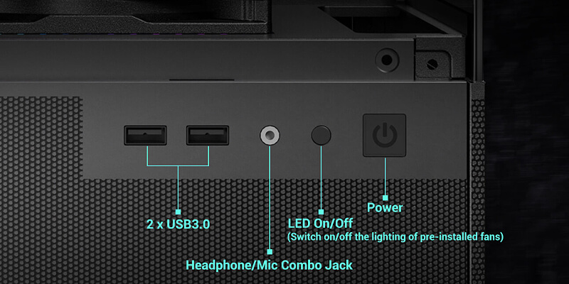 Вертикальное охлаждениеБольшой объем воздуха поступает через переднюю, боковую и нижнюю сетки, облегчая рассеивание тепла и защищая компоненты от перегрева.