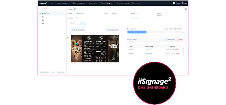 IISIGNAGE² iiSignage² — это платформа управления контентом для цифровых вывесок, которая позволяет легко отображать и управлять контентом, а также безопасно управлять дисплеями. Система управления контентом (CMS) предоставляет полный контроль над удаленной передачей сообщений и рекламой в безопасной форме. Для получения дополнительной информации нажмите здесь