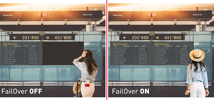 SIGNAL FAILOVERFailOver — это функция, которая автоматически определяет источники входного сигнала. Когда на входе по умолчанию нет сигнала, он автоматически переключается на следующий доступный вход. FailOver позволяет клиентам приоритизировать несколько входов и гарантирует, что контент всегда будет отображаться.