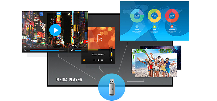 МедиаплеерВоспроизводите вашу любимую музыку и показывайте самые красивые видео и фотографии с помощью встроенного медиаплеера прямо на экране с внешнего накопителя или внутренней памяти.