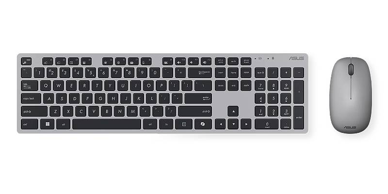 Обзор | Комплект Asus W5000Тонкая и прочная беспроводная клавиатура и мышь для повседневного использования. Компактная клавиатура с элегантной отделкой под металл. ДизайнASUS W5000 — это комплект беспроводной клавиатуры и мыши, который освобождает вас от проводов. Клавиатура имеет ультратонкий профиль толщиной всего 11 мм и оснащена клавишами типа chiclet с прочными и качественными резиновыми купольными переключателями для тихого и разнообразного набора текста. Горячие клавишиНастраиваемые горячие клавиши с Windows 11 в верхнем ряду клавиатуры, обеспечивают легкий доступ ко многим функциям Windows. ЭнергоэффективностьКлавиатура W5000 энергоэффективна и работает на частоте 2.4GHz с эффективным радиусом действия до 10 метров. Мышь автоматически переходит в режим энергосбережения, когда не используется. Небольшой светодиодный индикатор в центре мыши светится красным, чтобы вы знали, когда пора менять батарею. Когда вы закончите, USB-адаптер можно безопасно хранить в небольшом прямоугольном слоте на нижней стороне мыши. |
