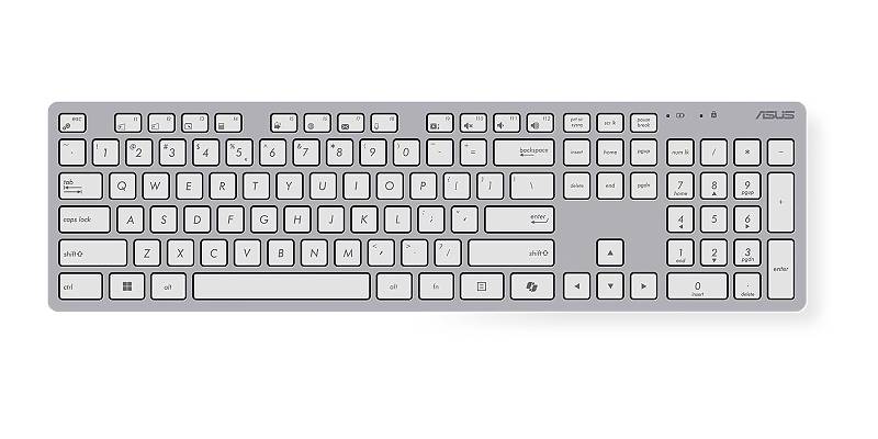 Обзор | Набор Asus W5000Тонкая и прочная беспроводная клавиатура и мышь для повседневного использования. Компактная клавиатура с элегантной отделкой под металл. ДизайнASUS W5000 — это набор беспроводной клавиатуры и мыши, который освобождает вас от проводов. Клавиатура имеет ультратонкий профиль толщиной всего 11 мм и оснащена клавишами типа chiclet с прочными и качественными резиновыми переключателями для тихого и разнообразного набора текста. Горячие клавишиНастраиваемые горячие клавиши с Windows 11 в верхнем ряду клавиатуры, обеспечивают легкий доступ ко многим функциям Windows. ЭнергоэффективностьКлавиатура W5000 энергоэффективна и работает на частоте 2.4GHz с эффективным радиусом действия до 10 метров. Мышь автоматически переходит в режим энергосбережения, когда не используется. Небольшой светодиодный индикатор в центре мыши светится красным, чтобы вы знали, когда пора менять батарею. Когда вы закончите, USB-адаптер можно безопасно хранить в небольшом прямоугольном слоте на нижней стороне мыши. |