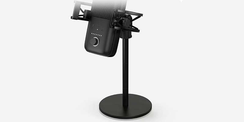 Изготовлен из массивной стали и покрыт черным порошковым покрытием, чтобы соответствовать настольной стойке, входящей в комплект с микрофоном Wave:1 или Wave:3.